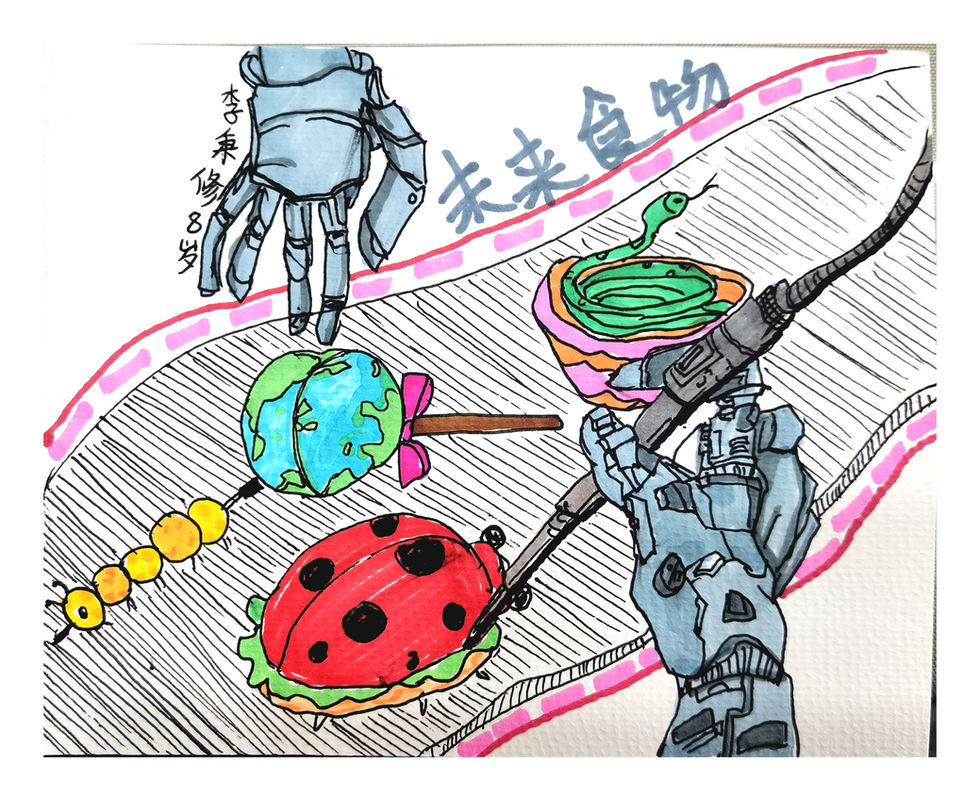 The Future Food project showcases young artists’ creative visions of how food will be grown, produced, and consumed in the future. Through their drawings, students explore themes like genetically modified foods, AI-driven agriculture, and robotic farming—raising awareness about the intersection of technology, sustainability, and food security. From futuristic farms to AI-assisted meal creation, these artworks encourage us to rethink the way we nourish our planet and ourselves.